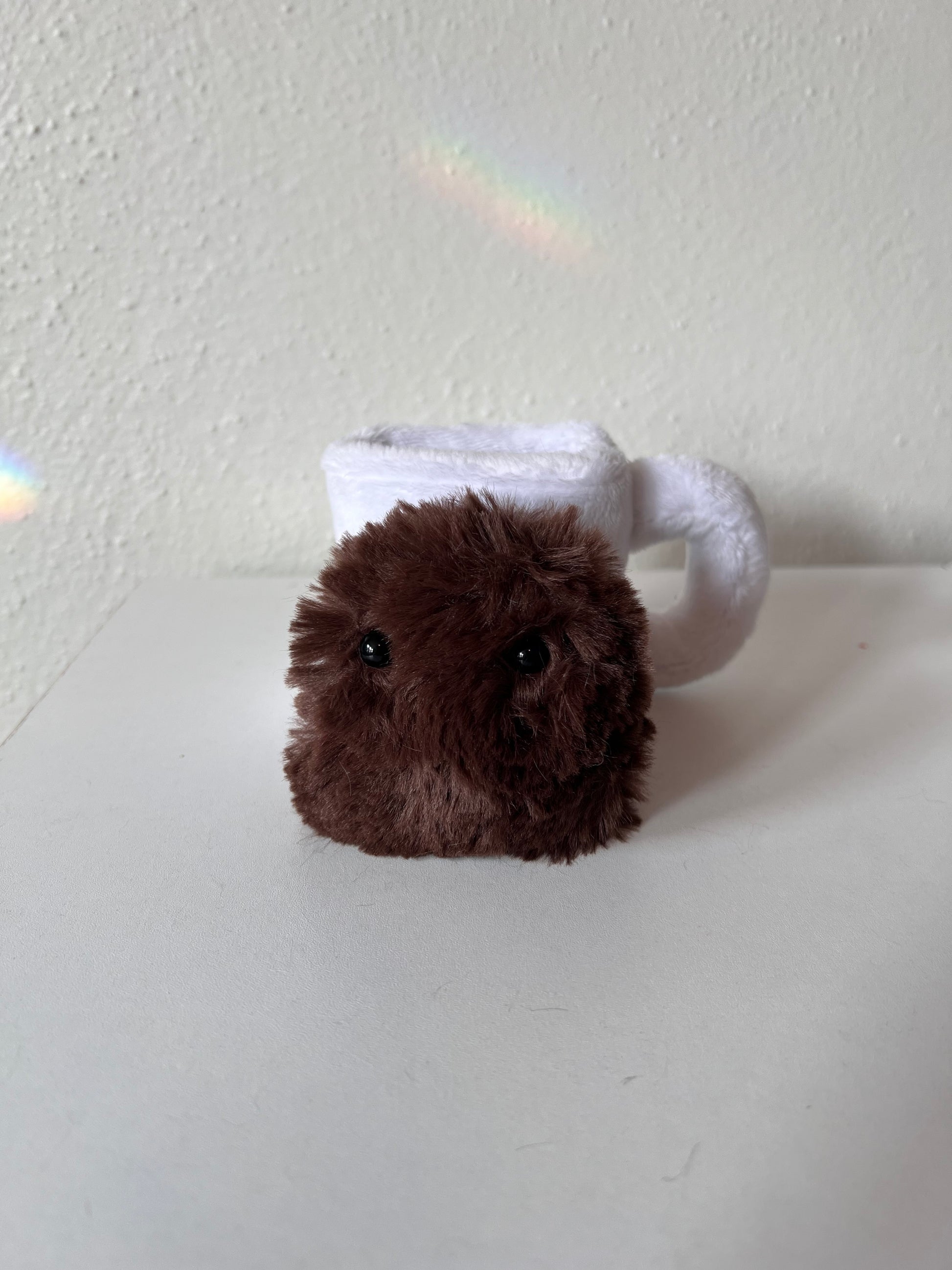 Beans are weighted and completely removable from mugs. Made from minky. Approximately 3” tall.
