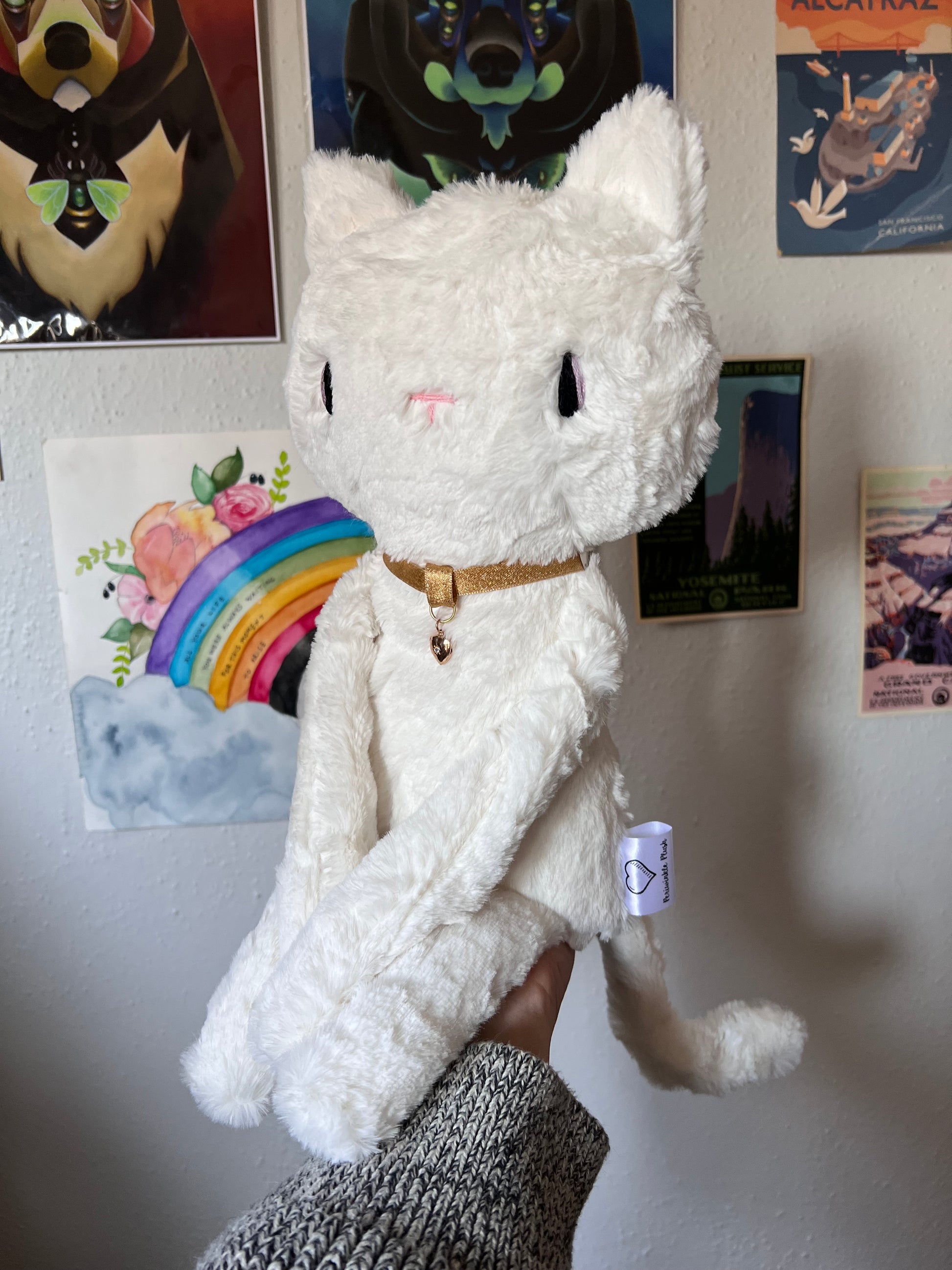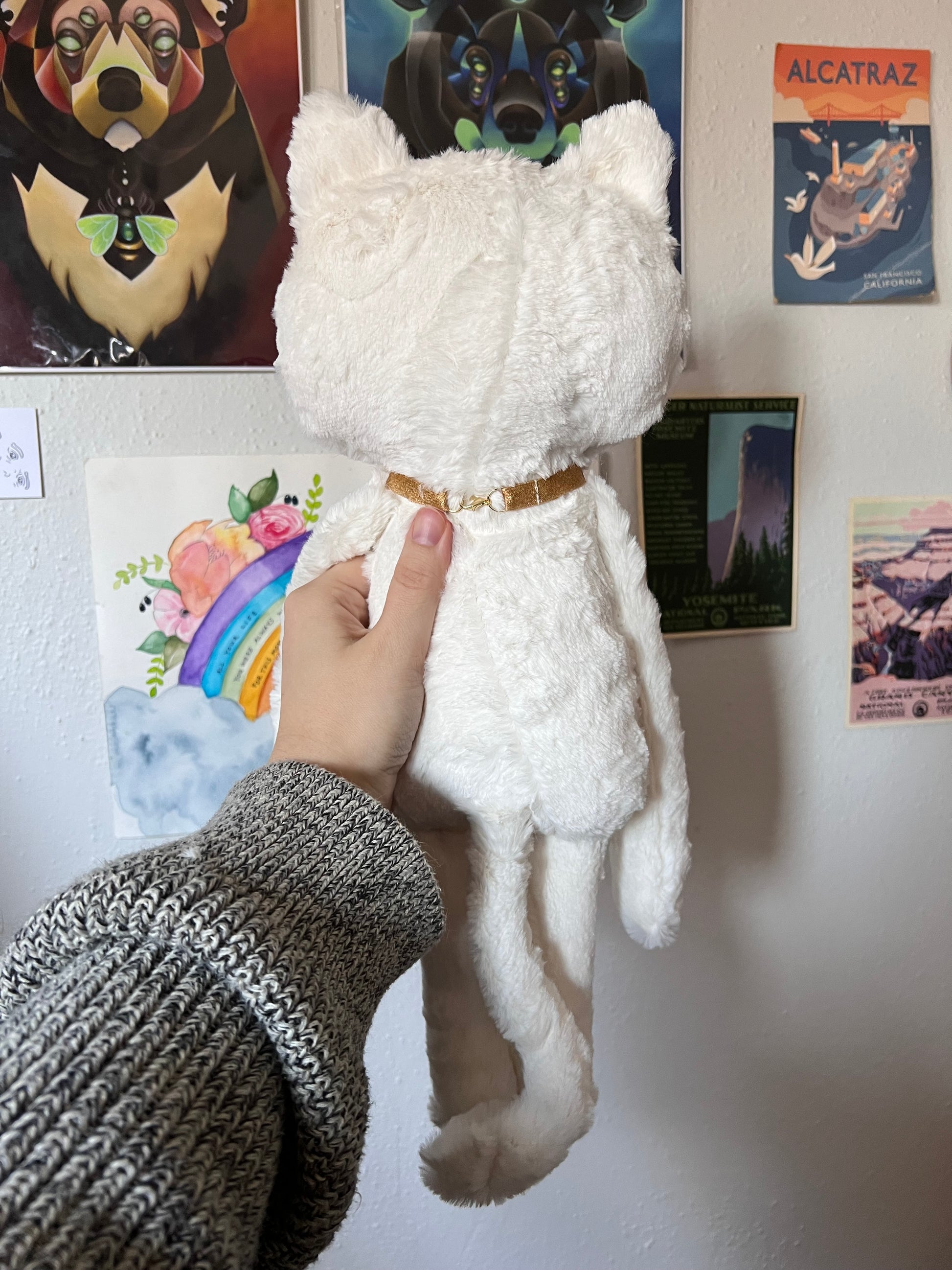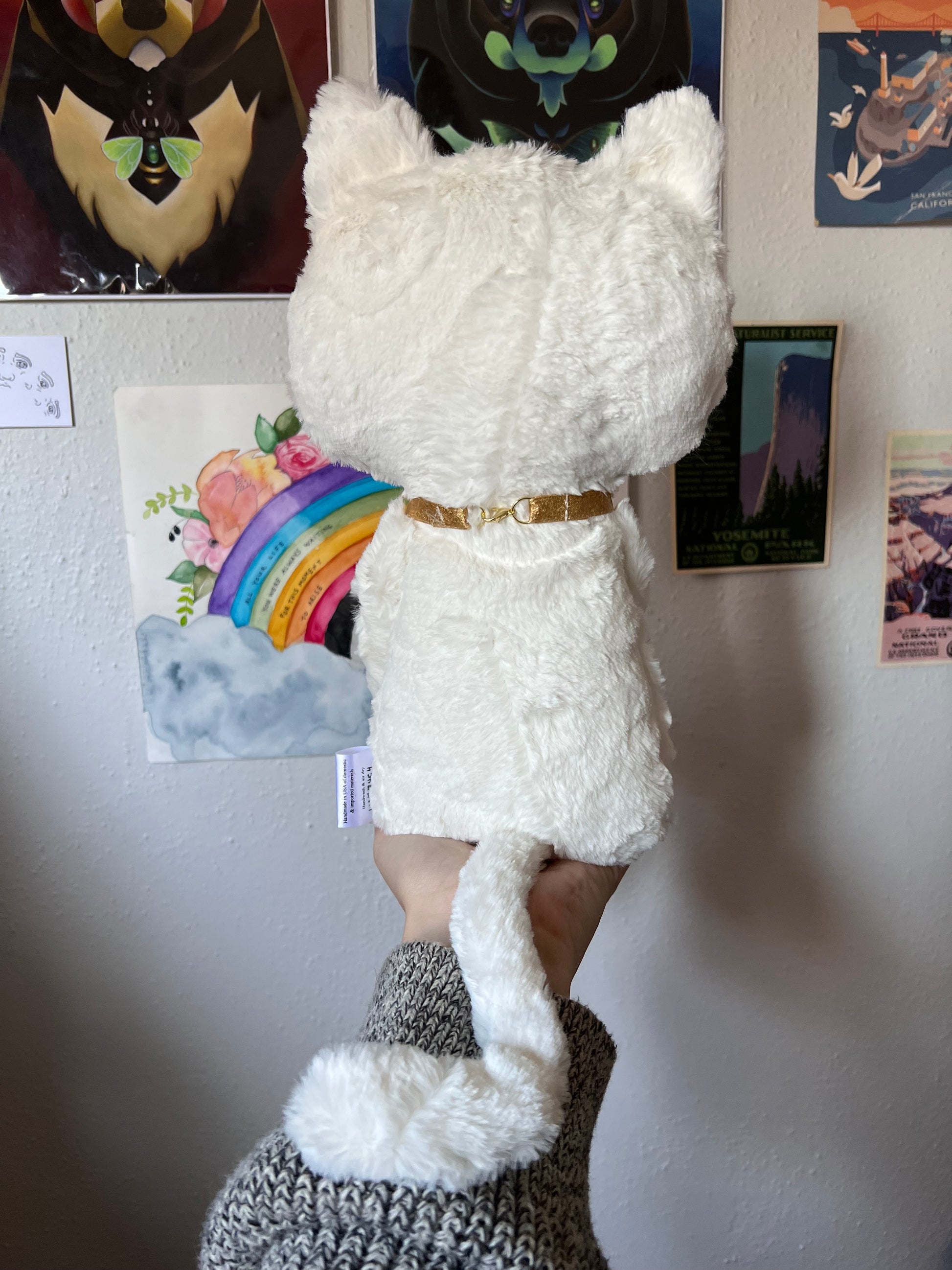 Weighted, approximately 16” tall head to toe. Removable collar included.